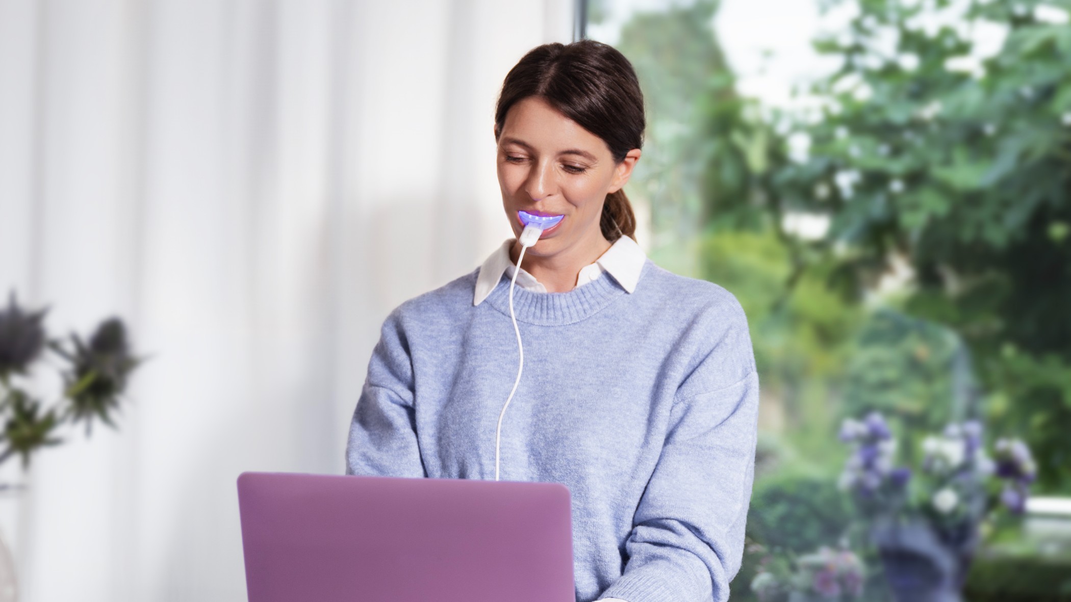 Plasser munnstykket i munnen og la det sitte i 10 minutter. Lyset aktiverer munnskyllet og utløser den antibakterielle effekten av behandlingen.